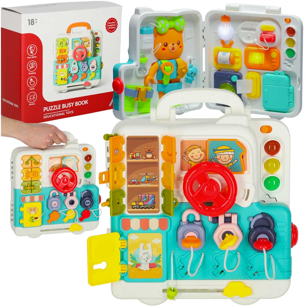 XXL manipulatīvais koferītis ar iebūvētajiem gaismas un skaņas moduļiem