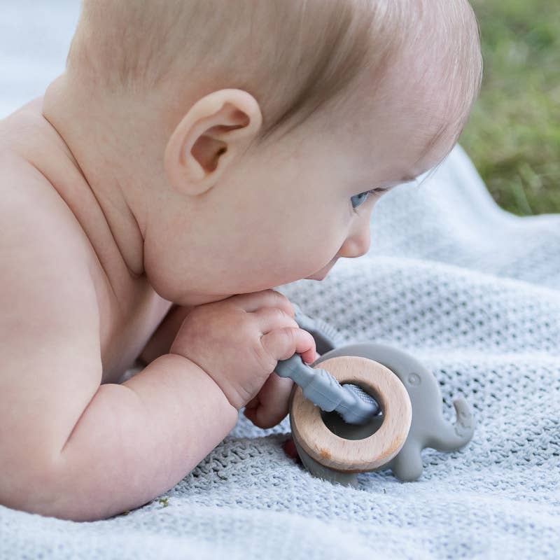 Graužamā rotaļlieta no silikona un koka "Zilonis"