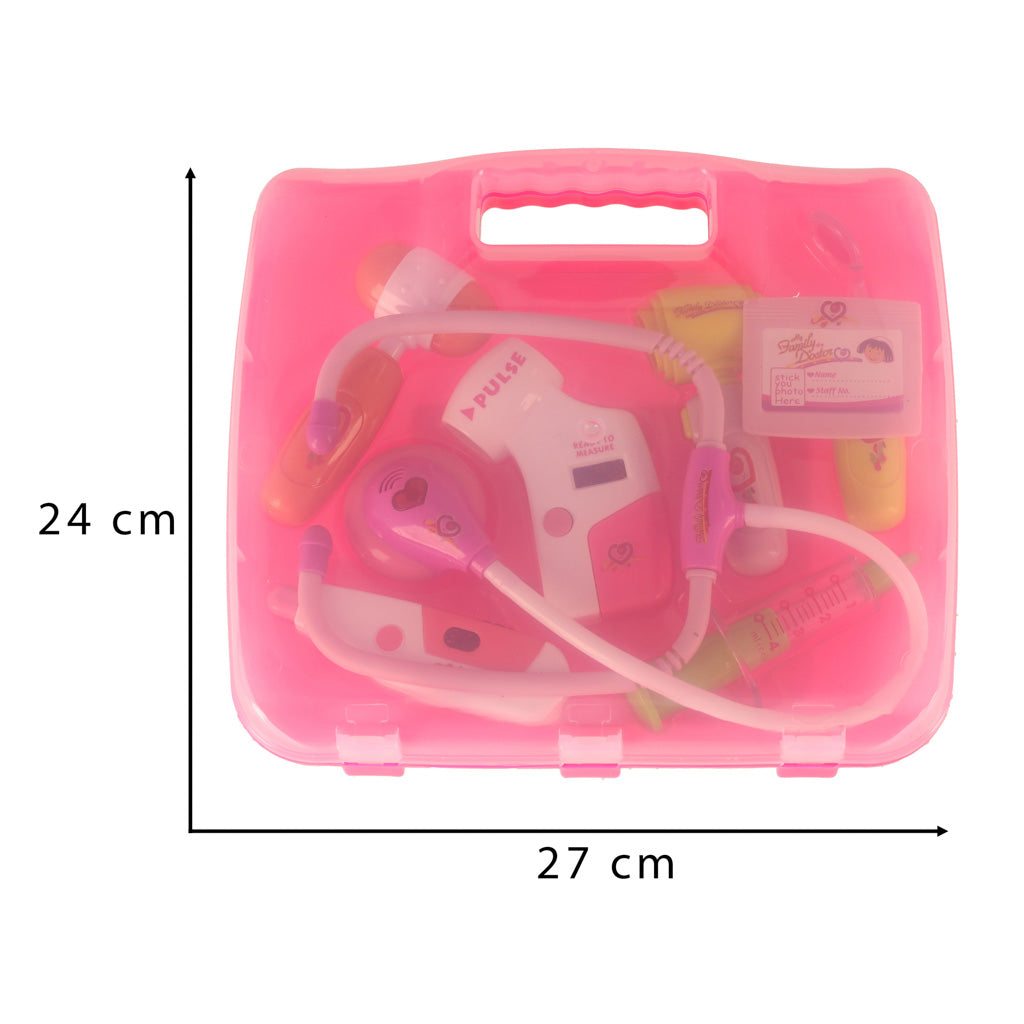 Rotaļājoties bērns var attīstīt empātiju un pārvarēt bailes no ārsta apmeklējuma. Komplektu var ērti uzglabāt un pārnēsāt praktiskā koferī.