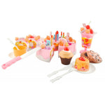 Komplektā iekļauta kūka, cepumi, kēksiņi un dažādi piederumi – šķīvīši, krūzīte, galda piederumi un dekorācijas, kas padara spēli daudzveidīgu un radošu.