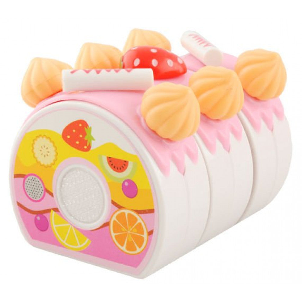 Kūka sastāv no 6 gabaliņiem, kas savienojas ar “velcro” tipa līplentēm – bērns var kūku “sagriezt” un atkal salikt no jauna, izmantojot plastmasas nazi.