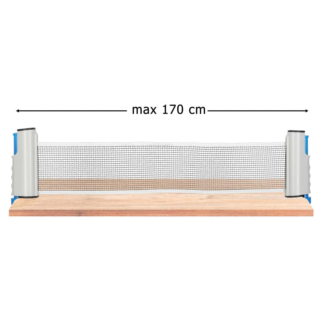 Komplektā: 2 atbilstoši izmēriem raketes (25,5 × 14,5 cm), 3 ping‑pong bumbiņas un elastīgs regulējams tīkls (170 × 14 cm)