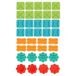 Krāsas: zaļa, tumši zaļa, zila, sarkana, oranža