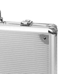 Čemodāns – alumīnijs, iekšpuse – PE putas, flaneļa oderējums, MDF ieliktnis