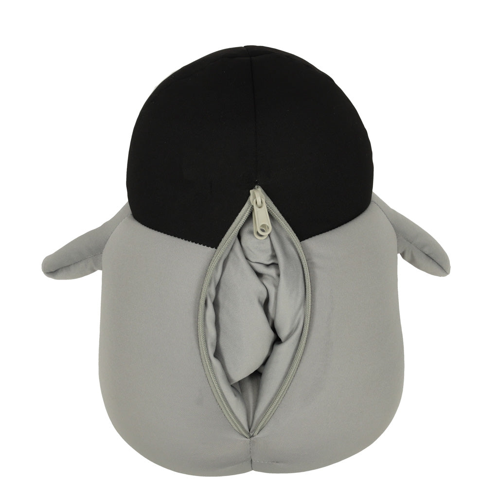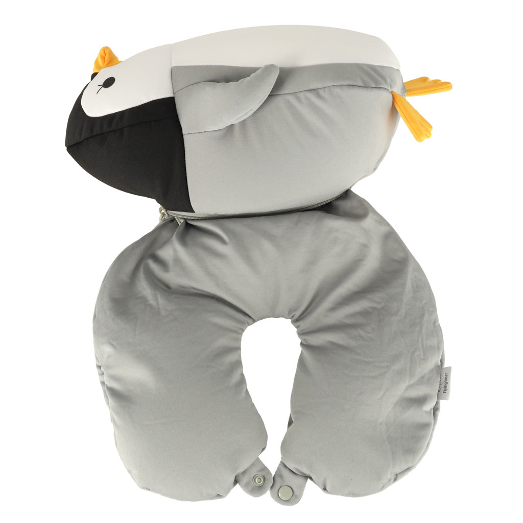 Divi vienā dizains: Viegli pārveidojams no mīkstas pingvīna rotaļlietas par U-veida kakla spilvenu.
