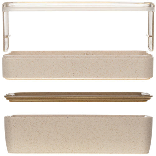 Divi atsevišķi nodalījumi: apakšējais trauks (400 ml) lielākiem ēdieniem, augšējais (350 ml) salātiem vai uzkodām, nodalījumu starpsiena kalpo arī par šķīvi.