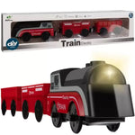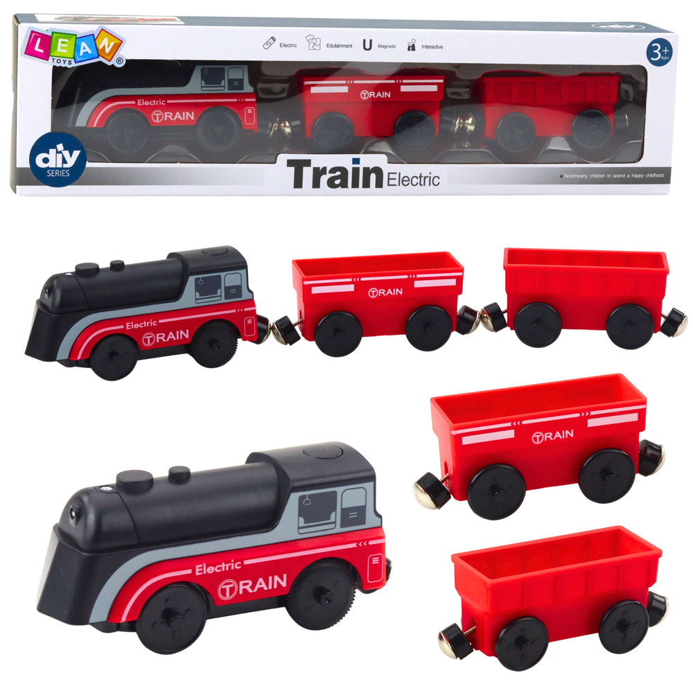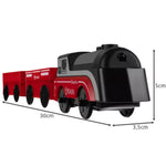 Vilcieniņš - lokomotīve, brauc ar bateriju. Saderība ar klasiskām koka vai plastmasas sliedēm.