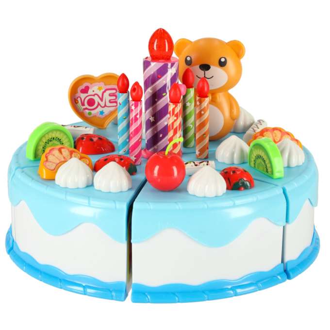 Krāsains dzimšanas dienas kūkas komplekts ar 80 elementiem. Kūku var “sagriezt” ar plastmasas nazi, rotāt ar augļiem, svecītēm un citiem dekoriem. Rotaļa attīsta bērna radošumu, fantāziju un rokas–acu koordināciju.