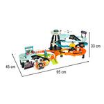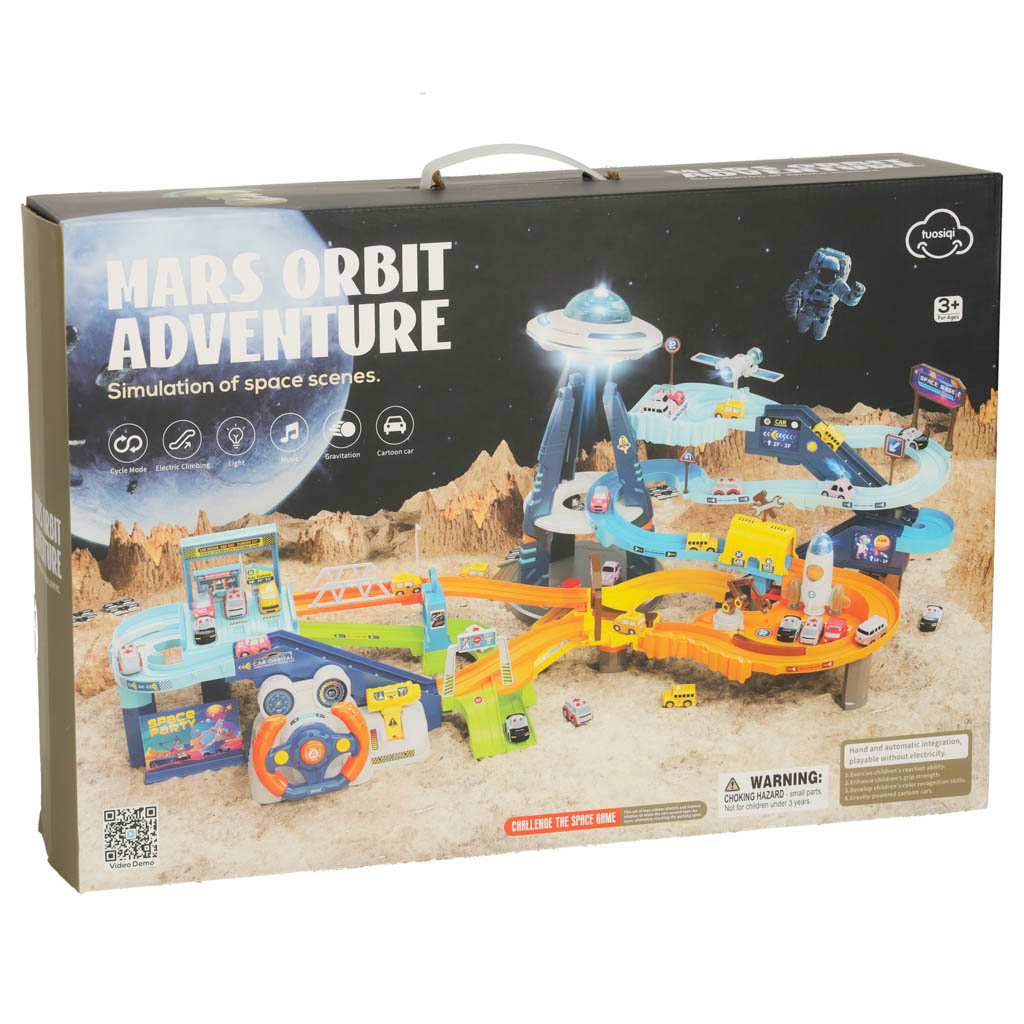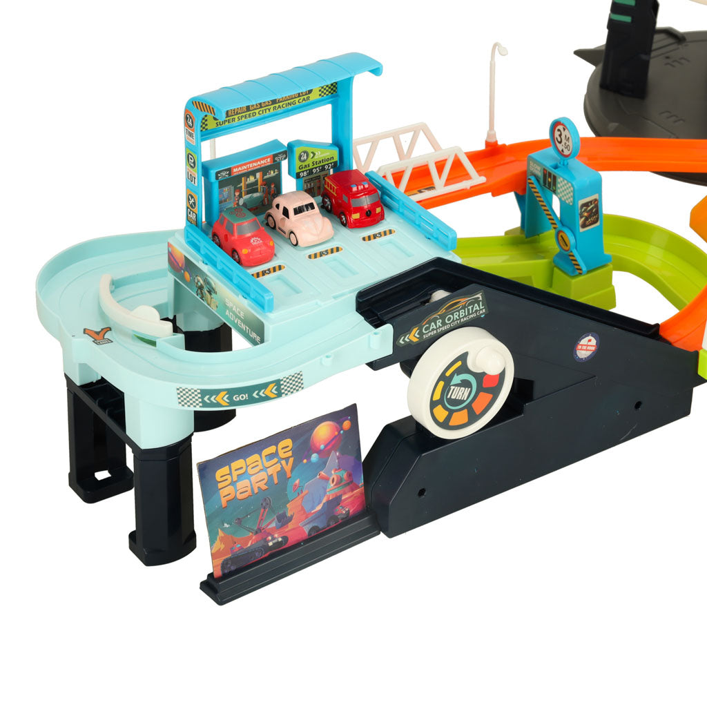Kosmiskā automašīnu trases komplekts piedāvā dinamisku un radošu izklaidi mazākajiem. Trase ir veidota ar vairākām līmeņu platformām, pagriezieniem un pacēlājiem, ļaujot bērnam būvēt divas atsevišķas trases vai vienu garu serpentīnu. Komplektā ir gan elektrisks, gan manuāls pacēlājs, kas attīsta sīko motoriku.