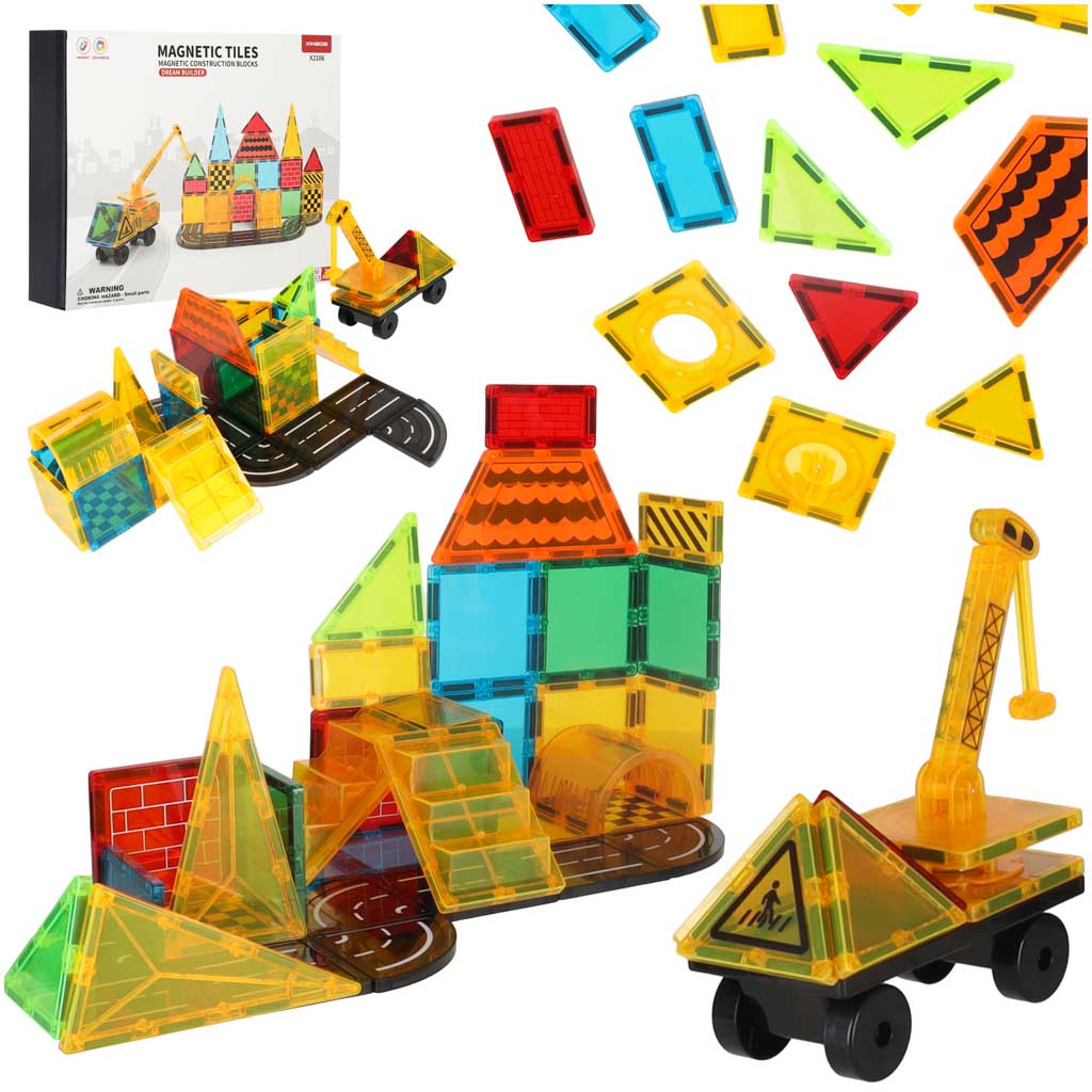 Magnētisko klucīšu komplekts 2D un 3D būvēm. Detaļas savienojas ar magnētiem, ļauj ātri veidot konstrukcijas. Attīsta telpisko domāšanu, sīko motoriku un loģiku.