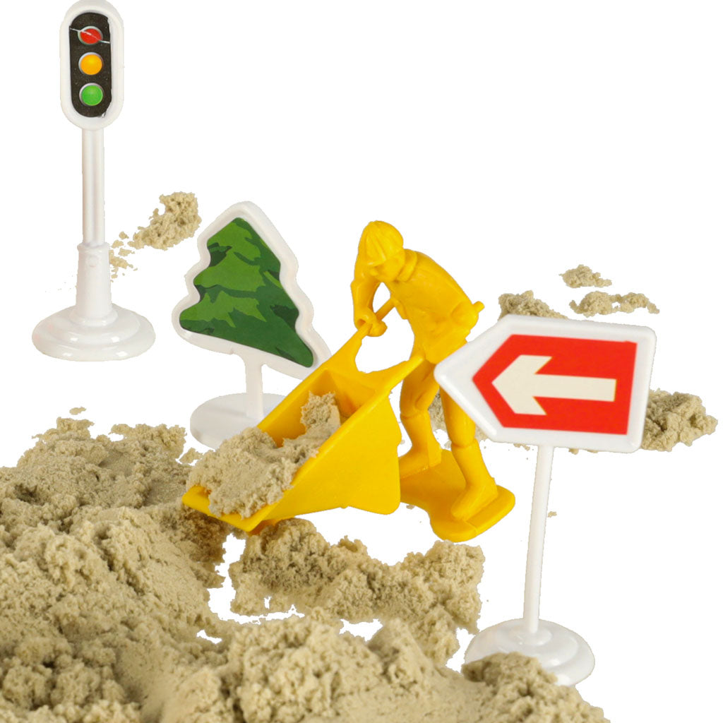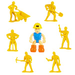 • 6x figūriņas (celtnieki) + ķerra, lāpsta, āmurs