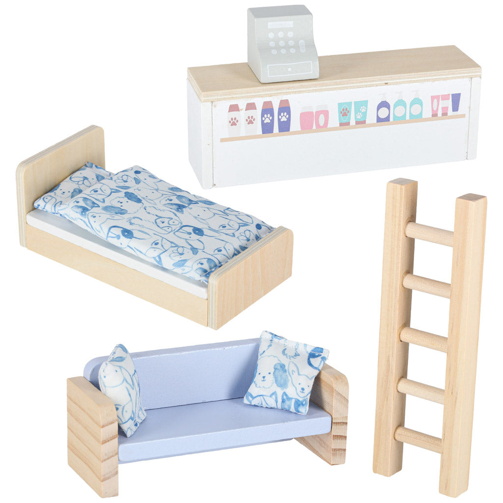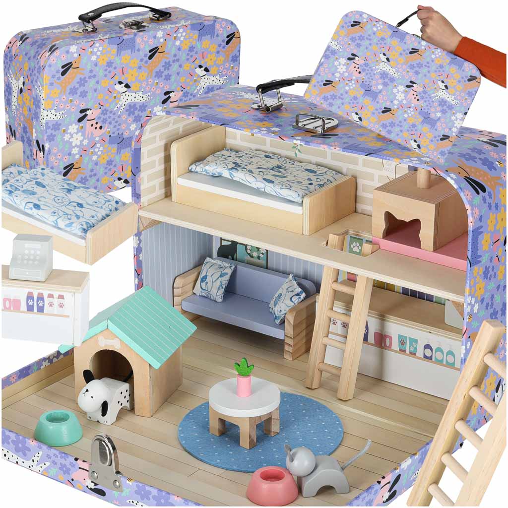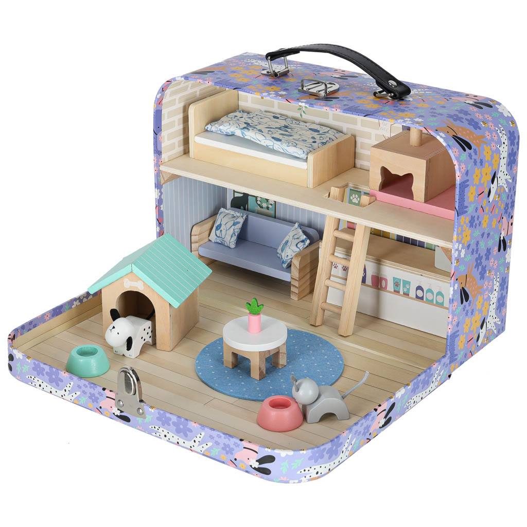 Leļļu māja čemodānā ar mēbelēm – dzīvnieku viesnīca