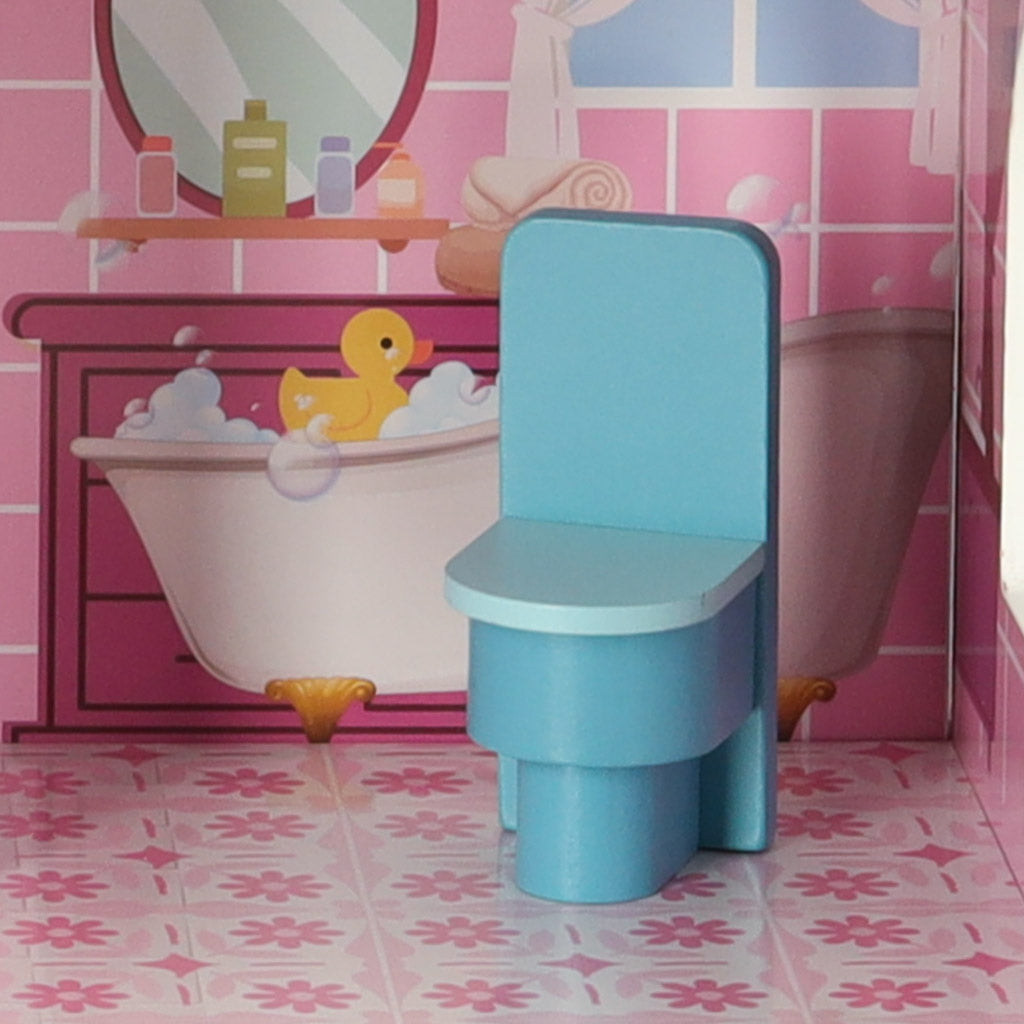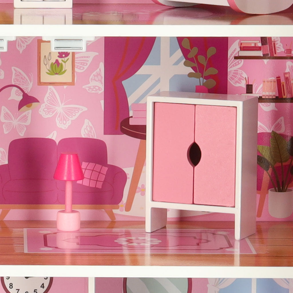 Trīsstāvu leļļu namiņš ar četrām istabām – virtuvi, viesistabu, vannasistabu un guļamistabu. Tas ir gaišos toņos ar rozā jumtu un plašiem logiem, kas ļauj bērnam rotaļāties no visām pusēm. Namiņa durvis aizveras ar magnētisku aizdari, bet apakšā ir ērta izvelkama atvilktne, kur glabāt papildus rotaļlietas un aksesuārus.
