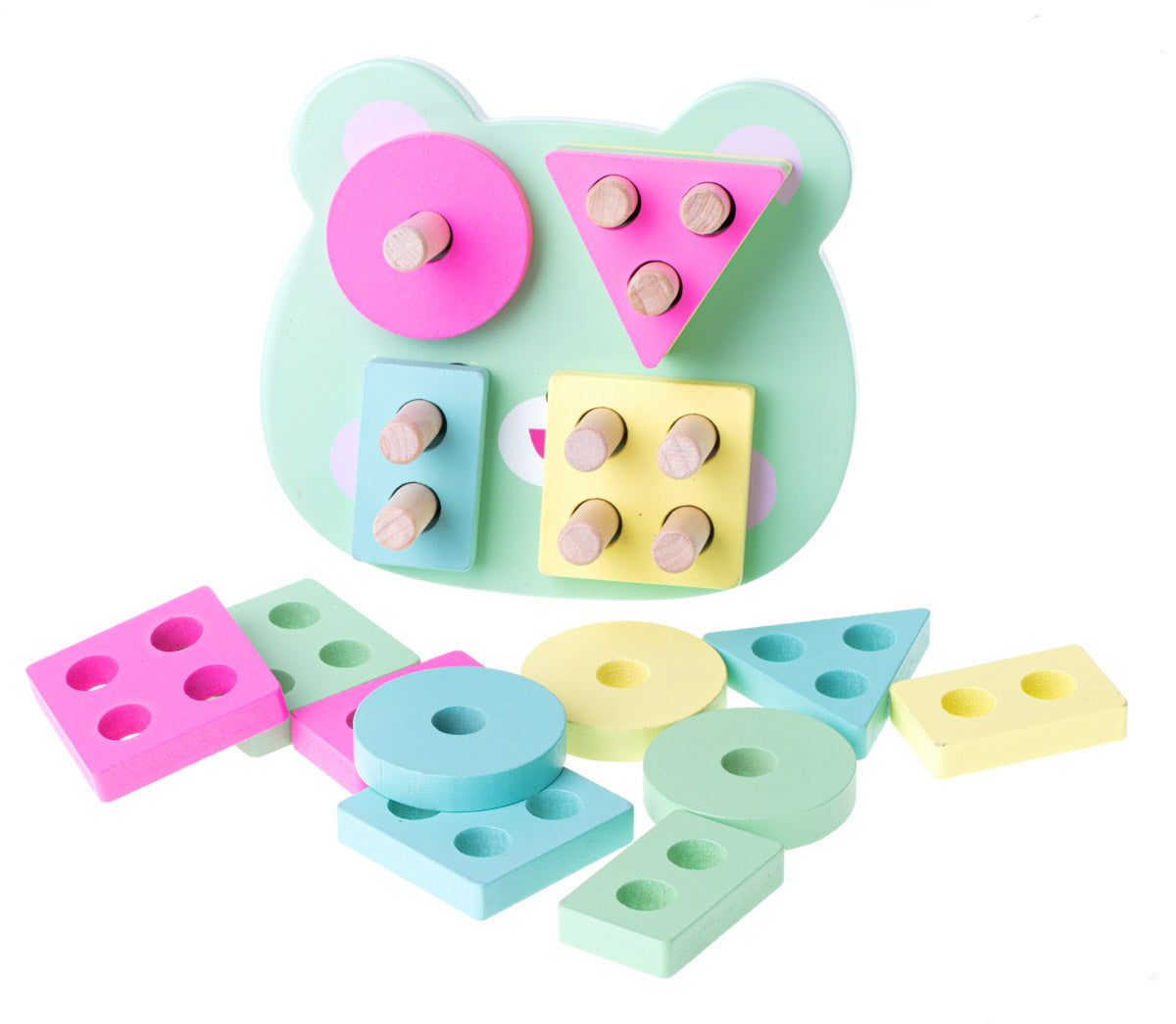 Klasisks un vienkāršs šķirotājs mazam bērnam - attīsta loģiku, sīko motoriku un koordināciju, ir gaišās, mierīgās krāsās.