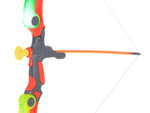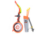Komplektā ietilpst vairogs, ko var piekārt vai piestiprināt pie sienas. Bērni varēs sarīkot sacensības šaušanā mērķī.