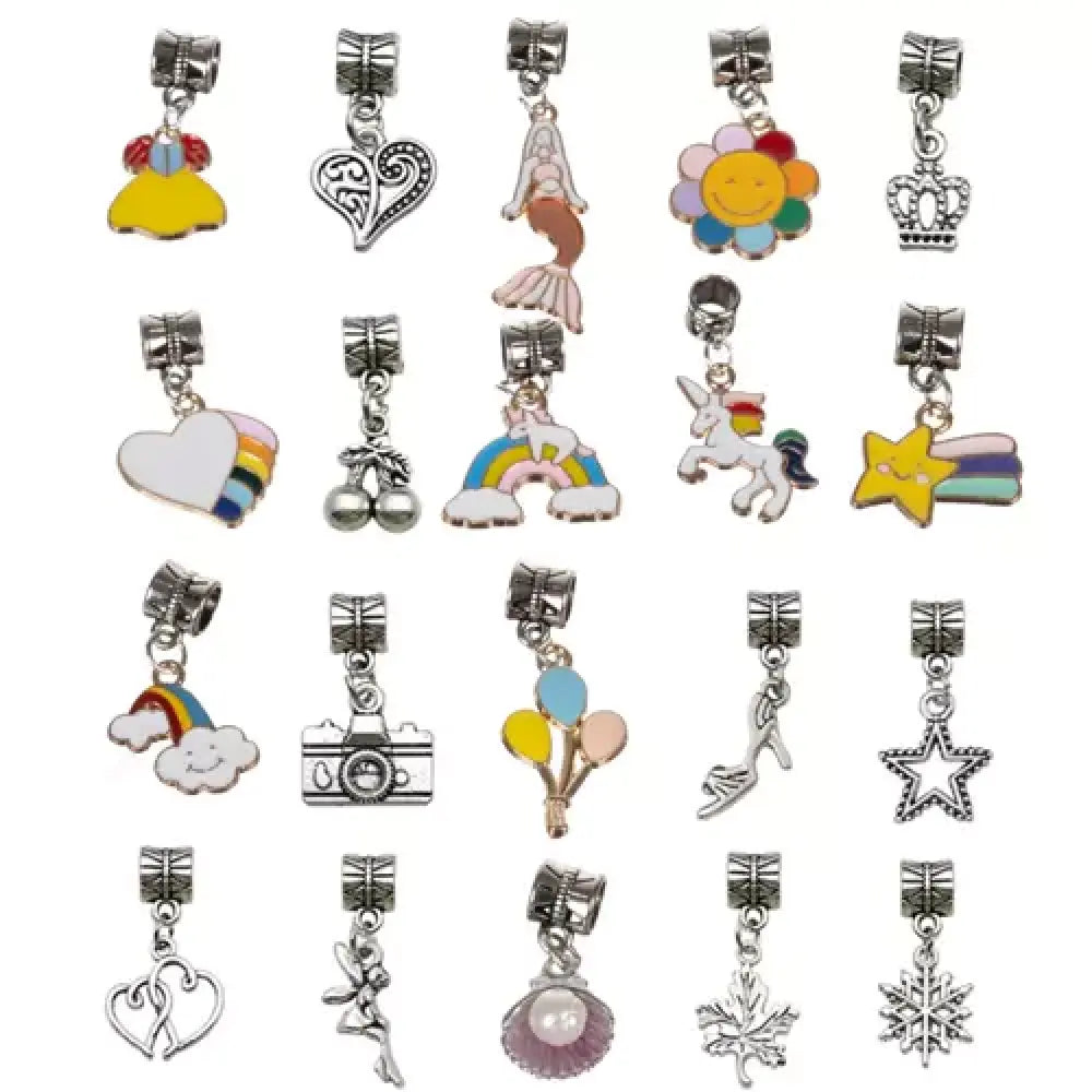 70 detaļu komplekts ļaus Jūsu bērnam izveidot pasakaini krāsainas rokassprādzes dažādās formās un ar dažādiem motīviem. Komplektam pievienotas 4 rokassprādzes uz kurām uzliek krelles un kulonus .