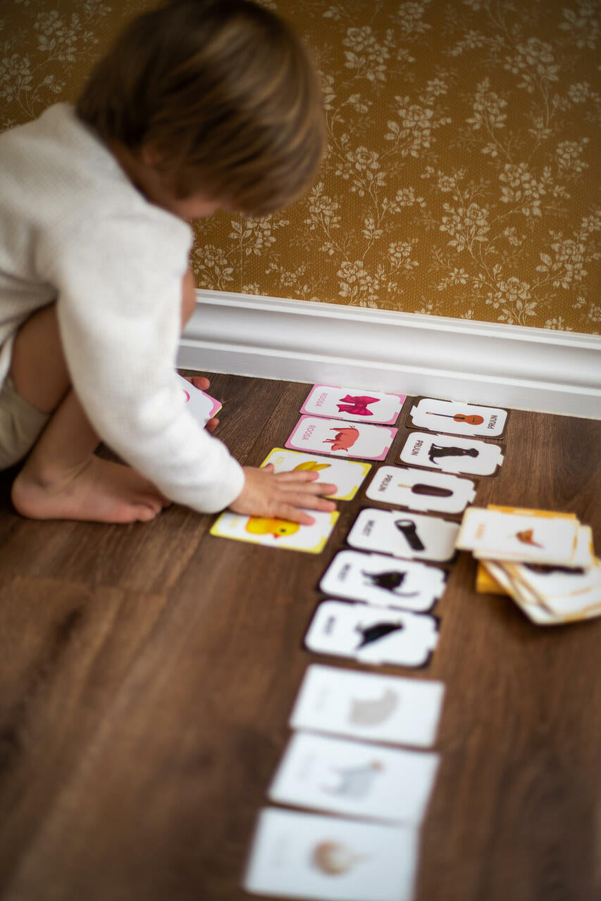 Melnbaltie kontrastattēli palīdz zīdaiņiem trenēt redzi un koncentrēšanos jau no pirmajiem dzīves mēnešiem, bet vēlāk šīs pašas kartītes var izmantot arī krāsu apguvei un vārdu krāšanai.