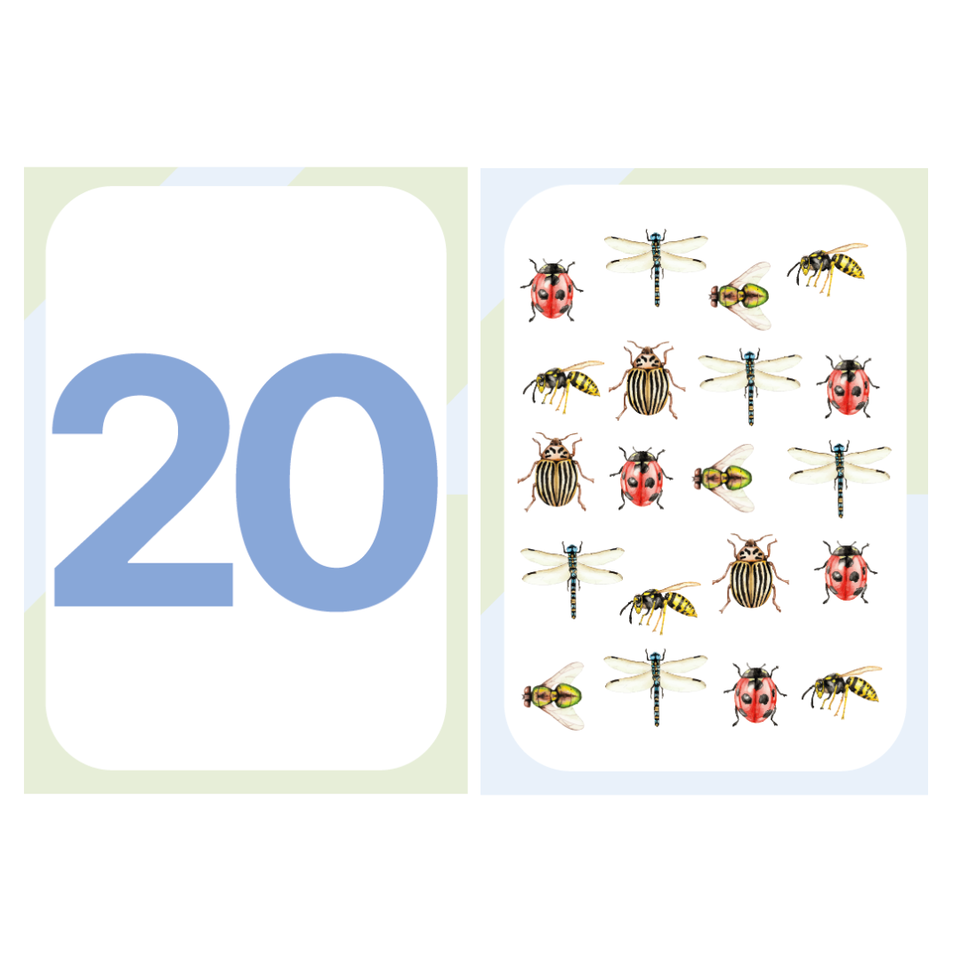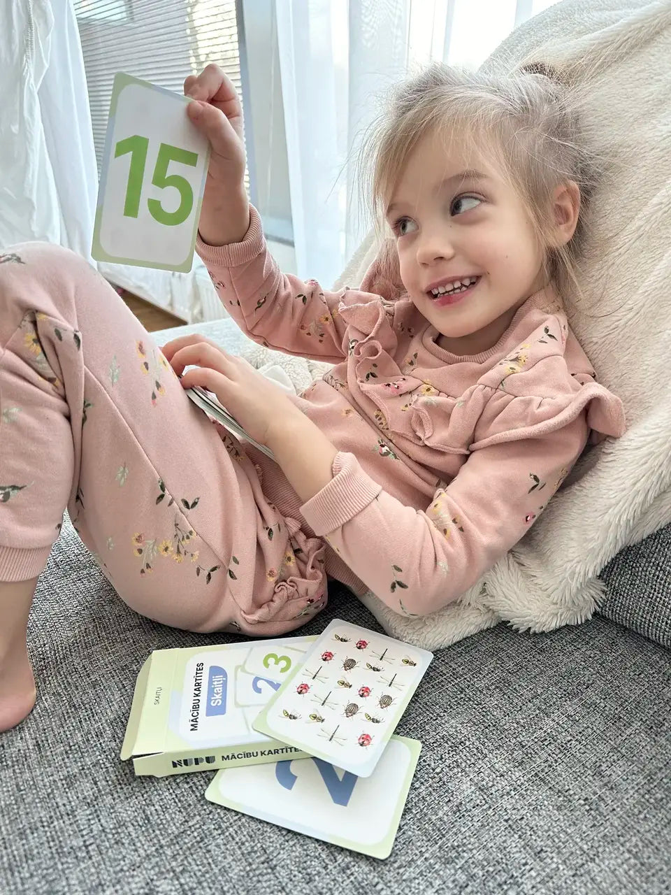 Šīs kartītes palīdz bērniem dabiskā veidā apgūt skaitļus no 1 līdz 20, kā arī attīstīt izpratni par aritmētikas pamatprincipiem.