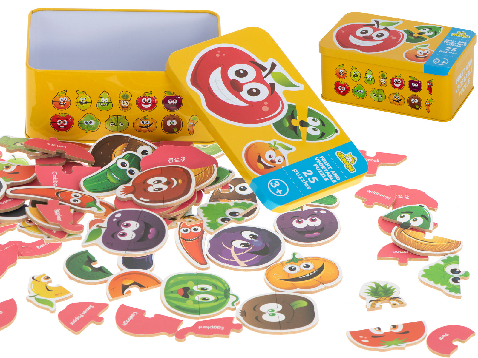 25 augļu&dārzeņu puzle, katra no 2 gab., metāla kārbā