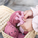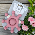 Zīdaiņu silikona graužamā rotaļlieta “Cirks”, putekļrozā krāsā