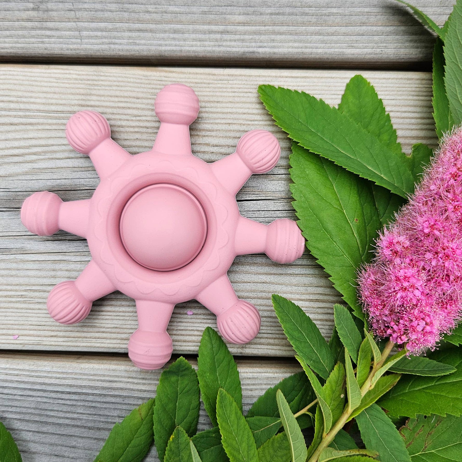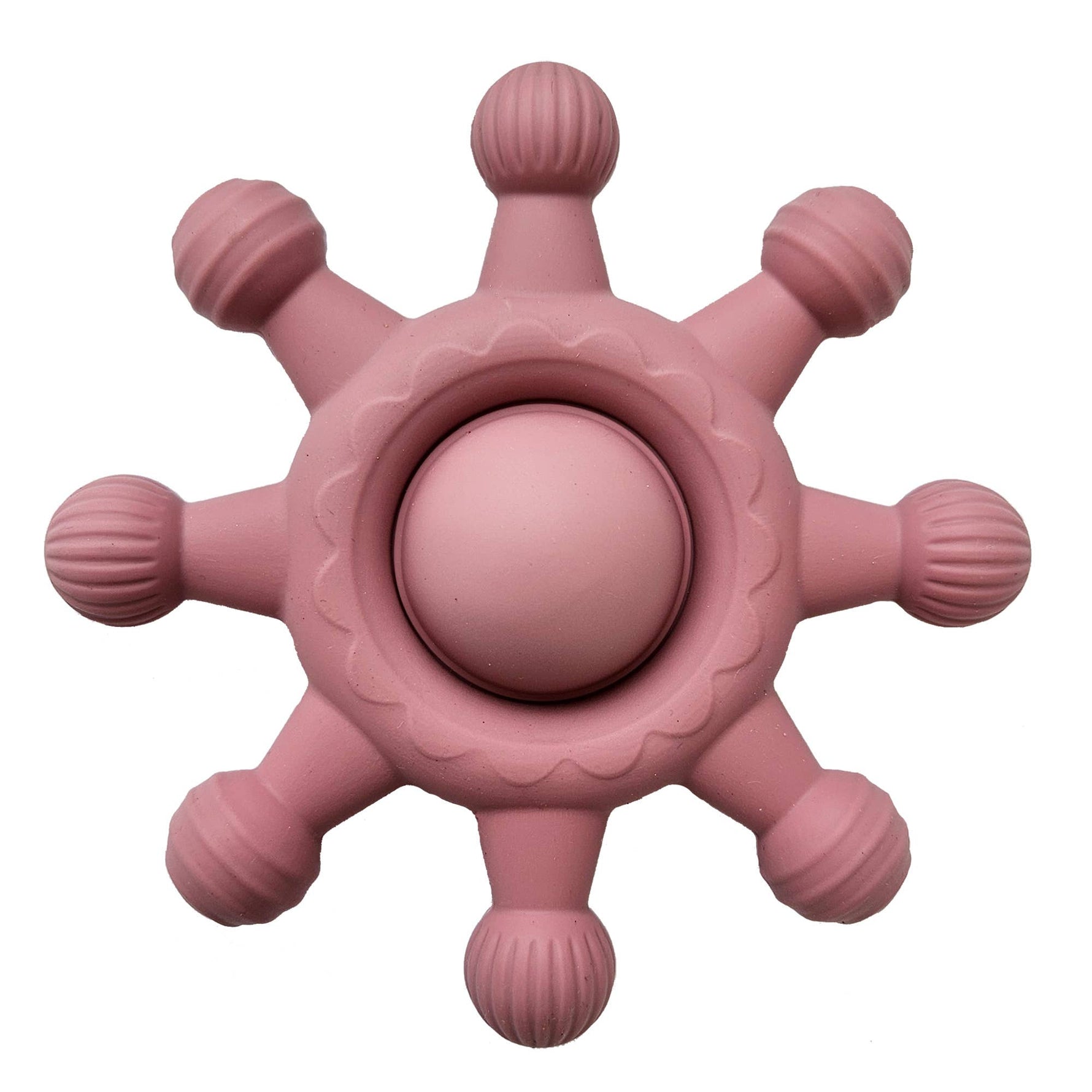 Silikona graužamā rotaļlieta, kas bērnam ir interesanta izpētei un patīkama košļāšanai zobu šķilšanās laikā. Vidū esošais aplis, piespiežot, rada klikšķa skaņu. Rotaļlietai ir patīkama struktūra, ko bērns var pētīt, un tā sniedz atvieglojumu smaganām. Tā ir viegli satverama un ērta turēšanai mazajās rokās.
