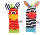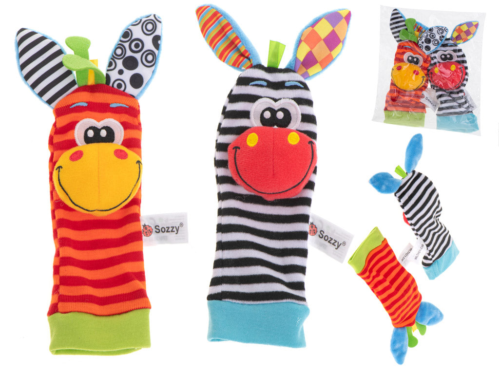 Zeķes, kas nodrošina pareizo temperatūru, un grabulīša radītā skaņa ieintriģē mazuli, stimulējot pacelt kājas un mācot "cēloņa-seku" principu.