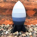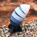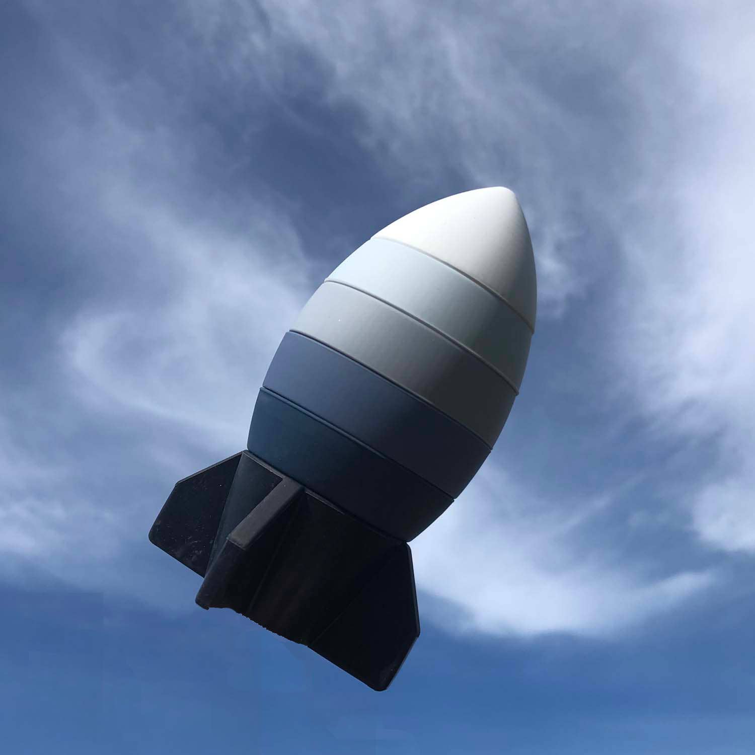 Rotaļlieta veidota kā raķete un iedvesmo radošām rotaļām. Mīkstais silikons ir lielisks, kluss materiāls.