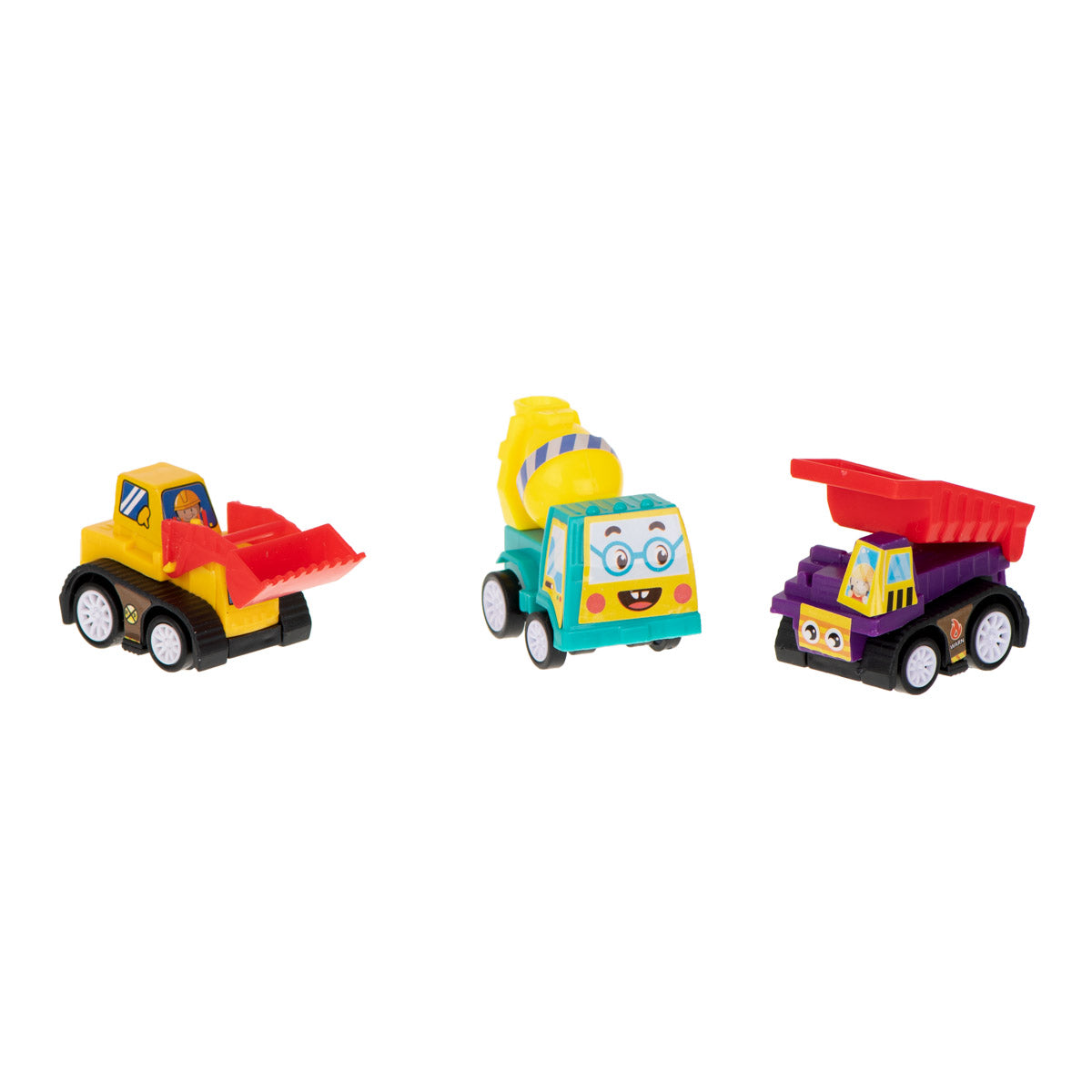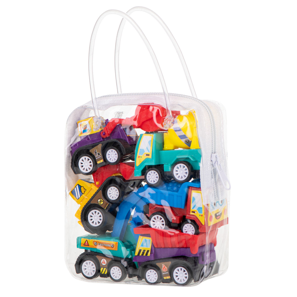 Komplektā ietilpst 6 dažādas motorizētas celtniecības automašīnas: