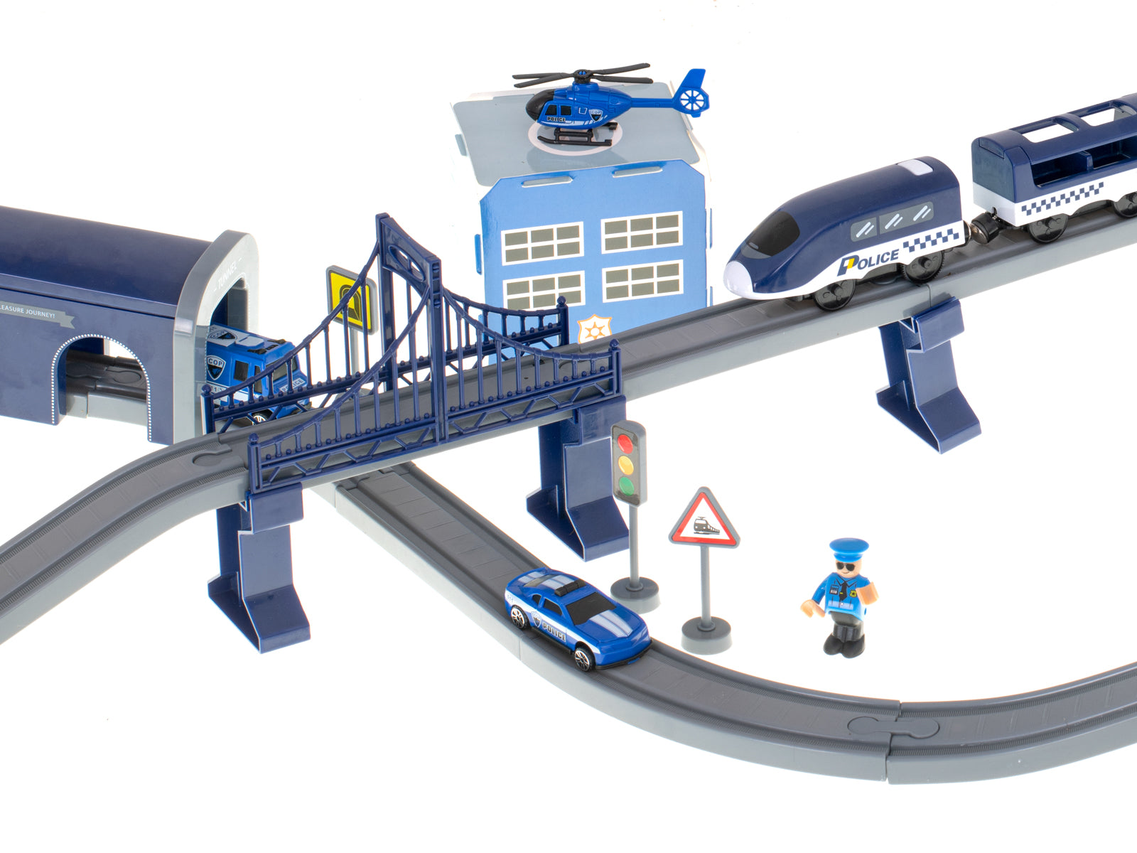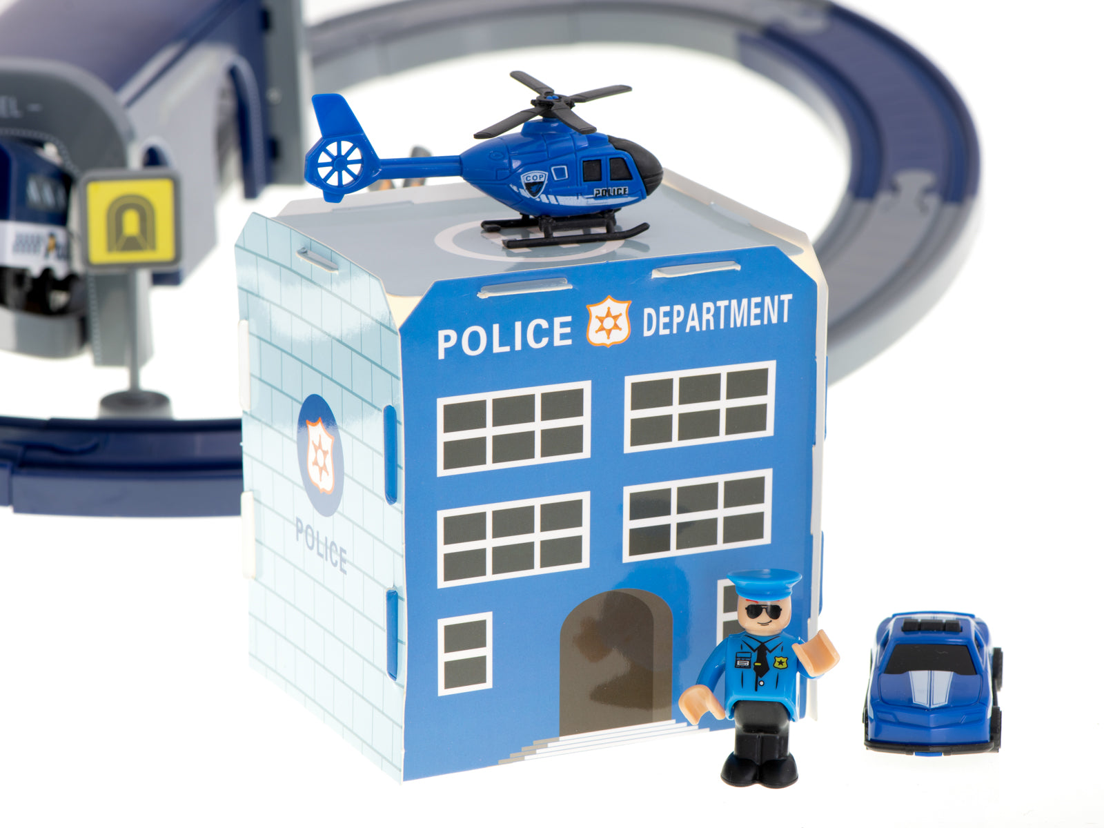 Trase ar vilcienu un automašīnām izklaidēs jūsu bērnu stundām ilgi. No sarežģītu konstrukciju veidošanas līdz lomu spēlēšanai trakās vajāšanas pēc ļaundariem!