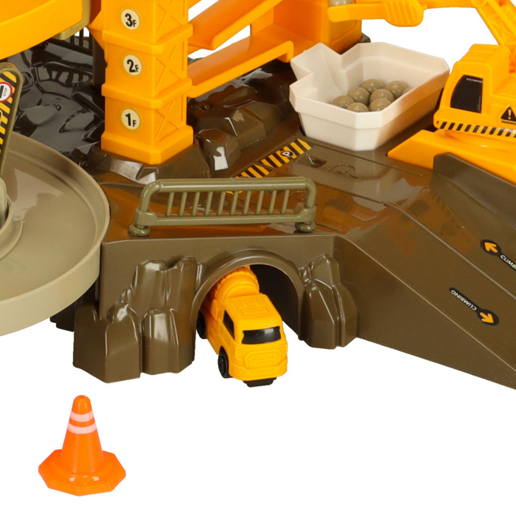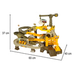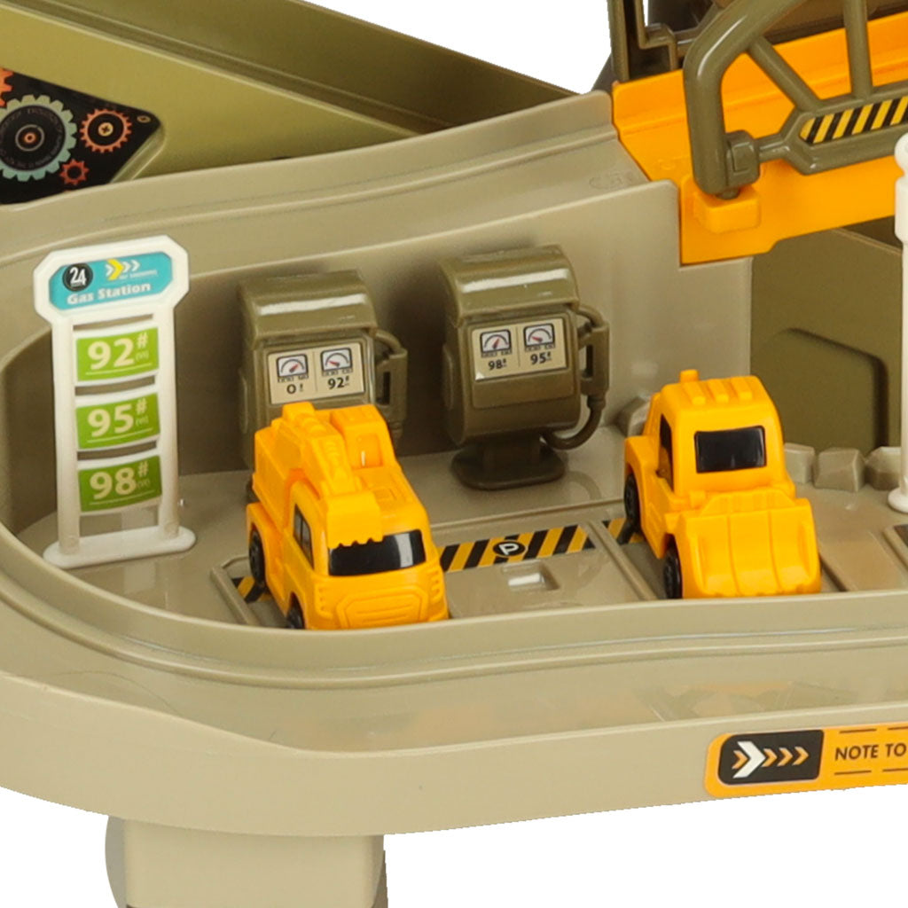 Daudzlīmeņu automašīnu trase , kas nogādās bērnus aizraujošā jautrības pasaulē. Rotaļlieta atgādina būvlaukumu, kur automašīnas transportē akmeņus no trases apakšas līdz pašai augšai. Automašīnas pārvietojas pašas, pateicoties elektriskajiem elementiem, kas tās iekustina. Trase darbojas ar trim AA baterijām (nav iekļautas komplektā). Rotaļlieta atbalsta smalko motoriku attīstību un izpratni par cēloņu un seku attiecībām.