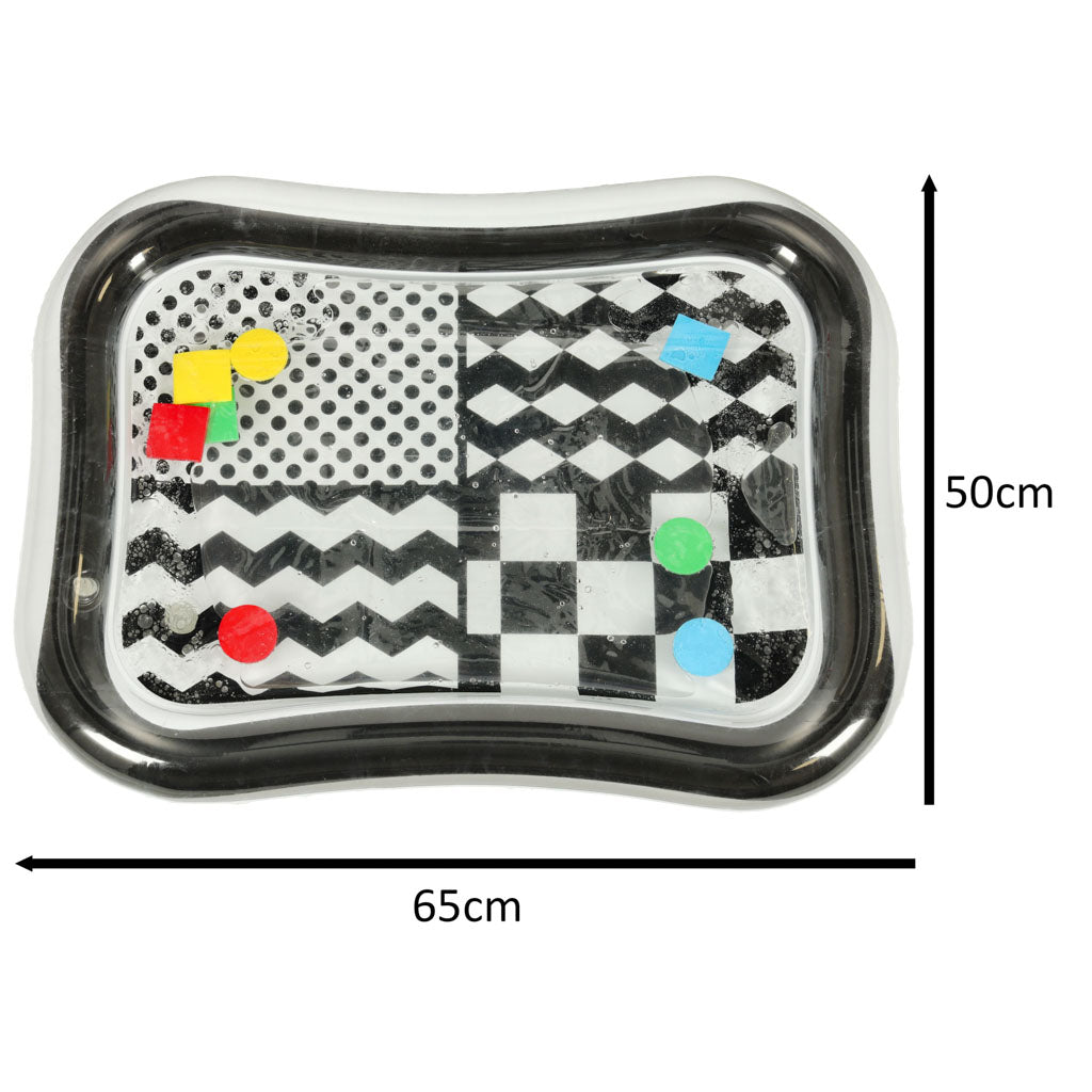 Piepūšamais sensorais paklājiņš ar kontrastējošiem elementiem ir ideāla rotaļlieta pašiem mazākajiem. Malas ir piepildītas ar ūdeni. Krāsainas ģeometriskas figūras paklājiņa iekšpusē piesaistīs bērnu uzmanību un rosinās uz aktīvām rotaļām.