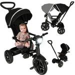 Trike Fix Elite ir unikāls trīsriteņu velosipēds, kas mainās līdzi Jūsu bērnam. Velosipēdam ir divas funkcijas: kā ratiņiem un kā trīsritenim. Kā rati modelis ir aprīkots ar tādiem elementiem kā barjera, drošības jostas, nojume un kāju balsti, kas nodrošina, ka bērns pastaigas laikā ne tikai jutīsies ērti, bet arī būs drošībā. Kad jūsu mazais kļūst vecāks, drošības elementus var noņemt, pārveidojot produktu par trīsriteni neatkarīgai braukšanai. Uz stūres ir lampiņa ar skaļruni (darbina ar 3 AA baterijām – nav iekļautas komplektācijā), kas padarīs Jūsu pastaigas patīkamākas. Izmantojot pogas, jūsu mazais var pārslēgties starp četrām melodijām.