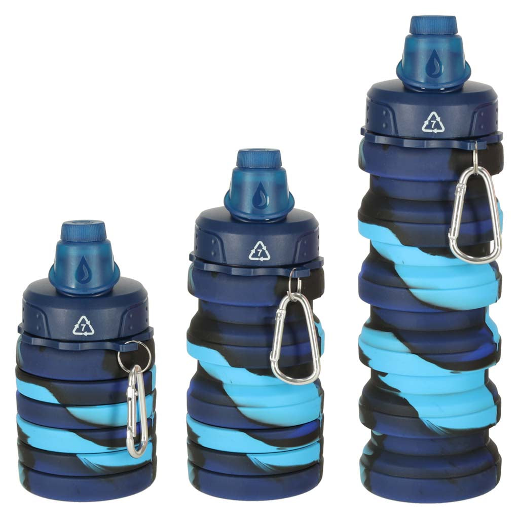 Silikona ūdens pudele, salokāma, zila