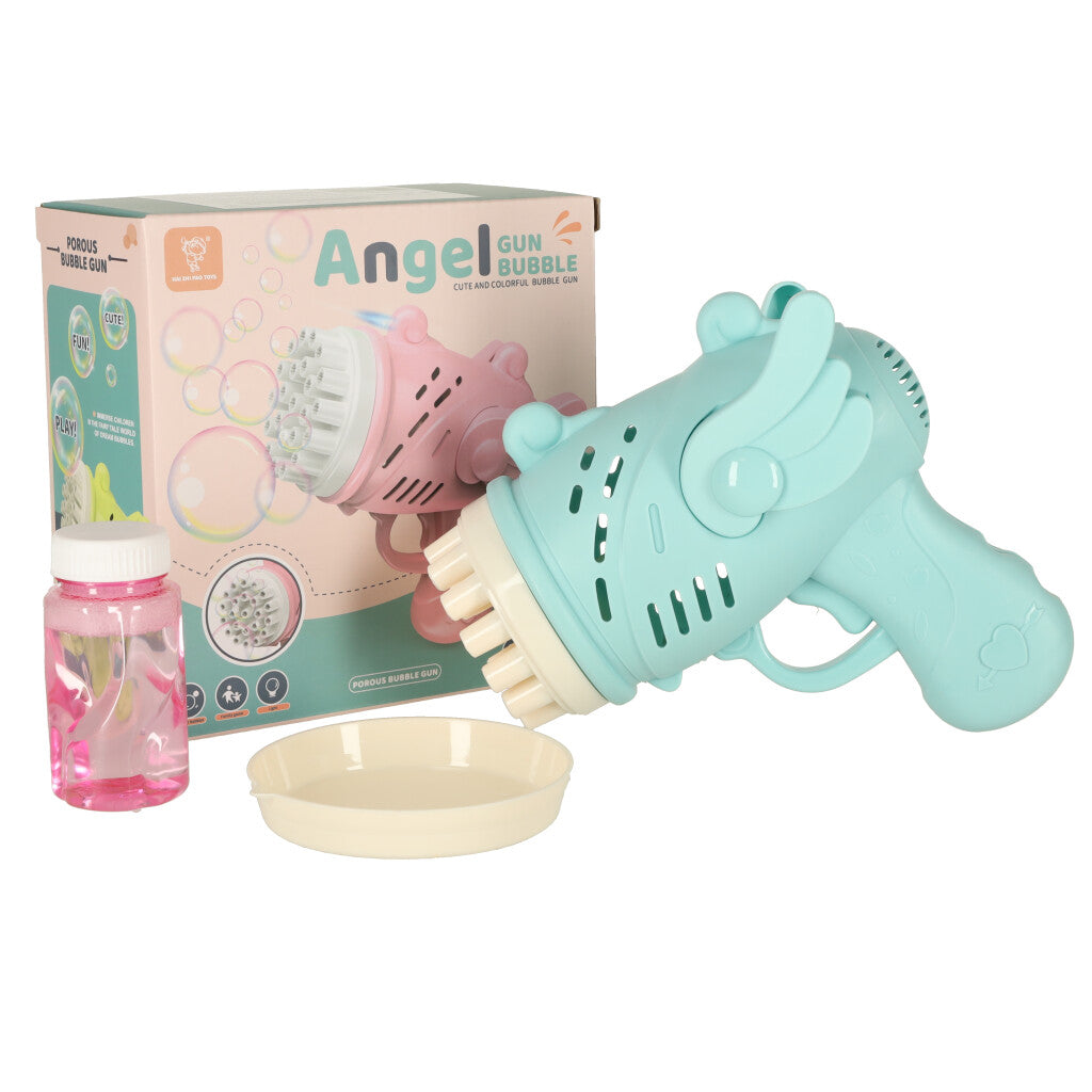 Ziepju burbuļu pistole ar ziliem spārniņiem