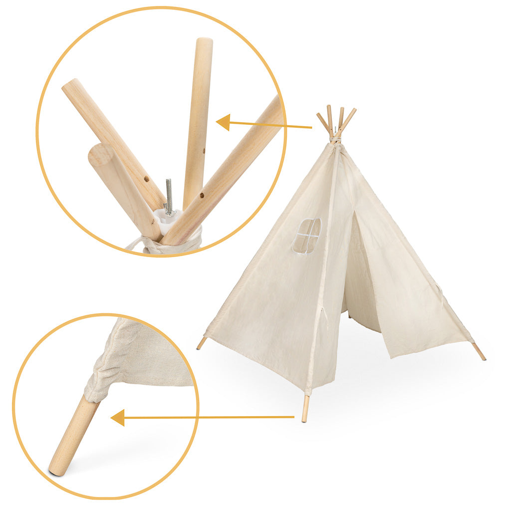 Indiāņu tīpijs ir burvīga spēļu vieta, kas iepriecinās ikvienu bērnu! Tā ir perfekta paslēptuve, kur bērns jutīsies kā īsts mazais pētnieks. Iekšpusi var iekārtot ar segu, spilveniem un mīļākajām rotaļlietām, radot mājīgu vidi lasīšanai, rotaļām vai vienkāršai atpūtai.