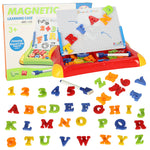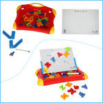 Tāfele ar marķieri un magnētiem ciparu un burtu formās.