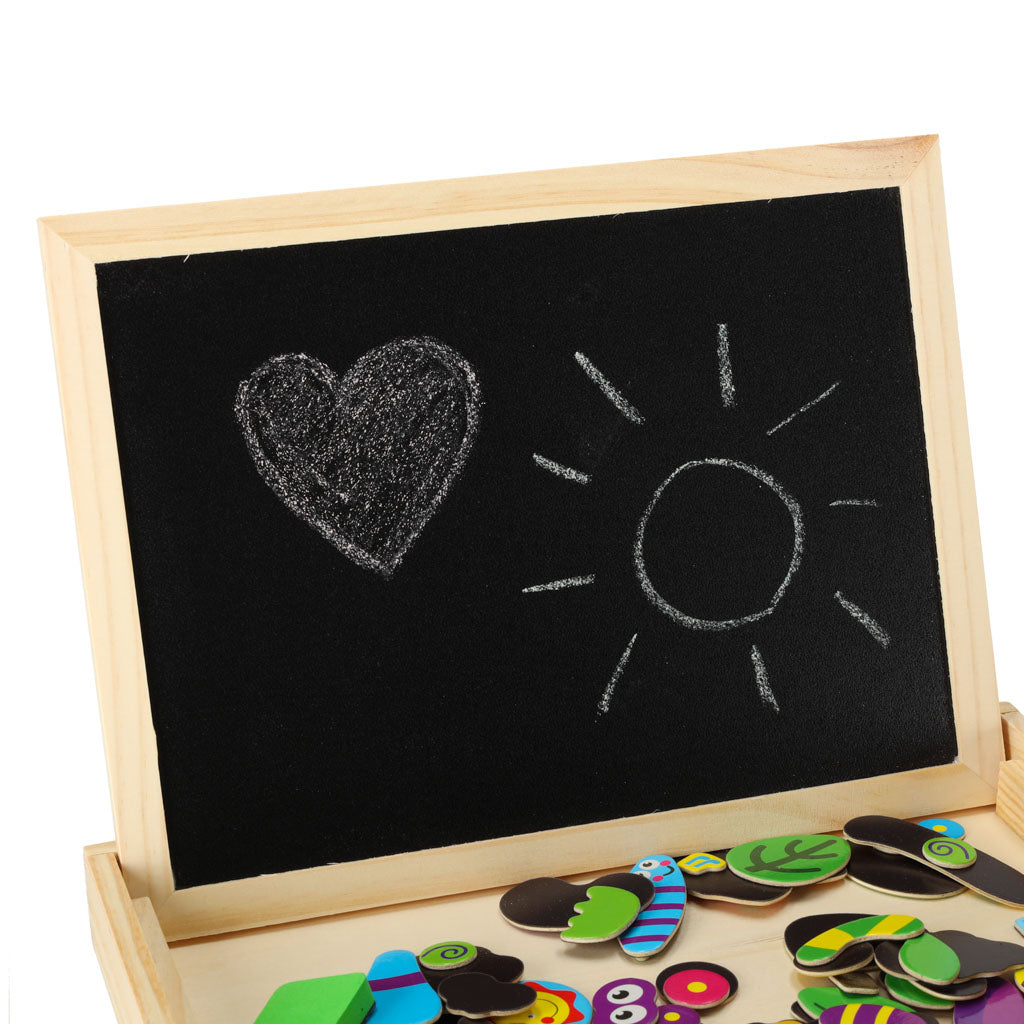 Baltā magnētiskā puse tiek izmantota krāsainu puzļu kārtošanai un rakstīšanai ar marķieri