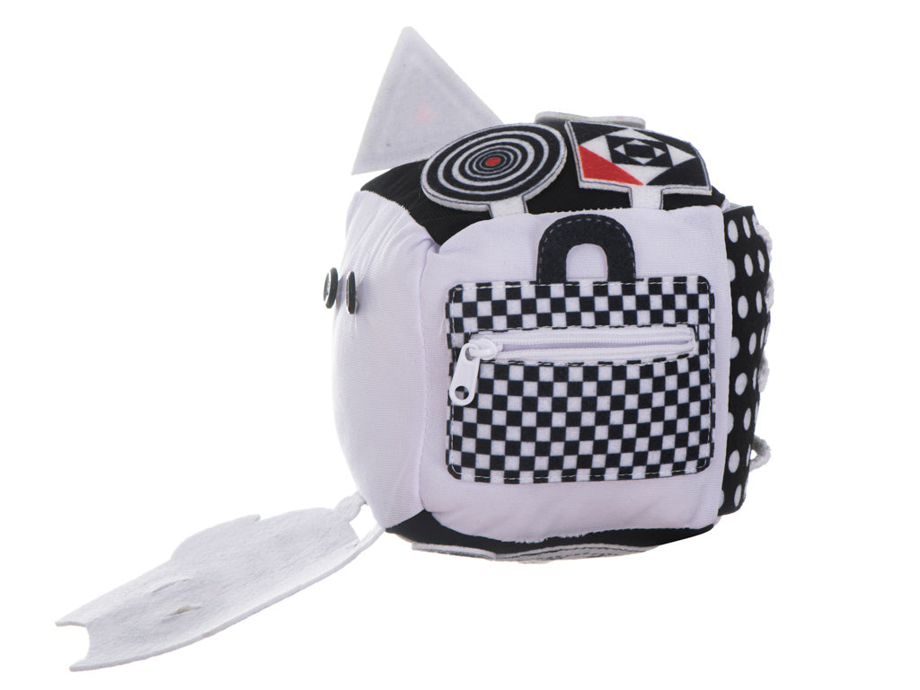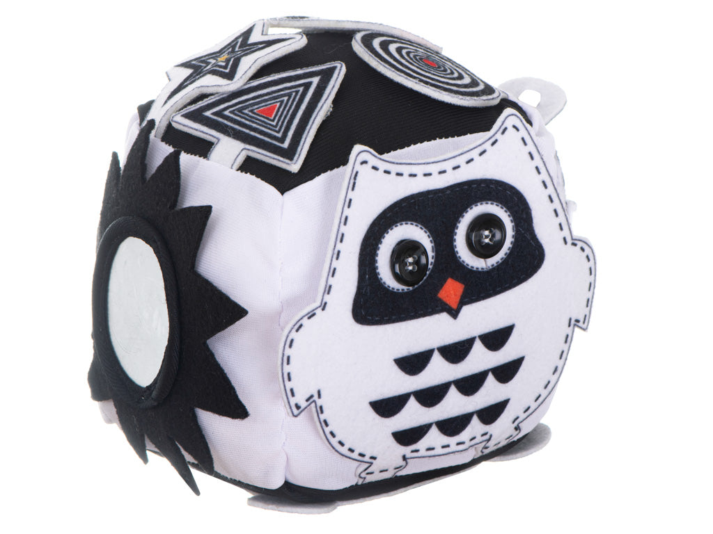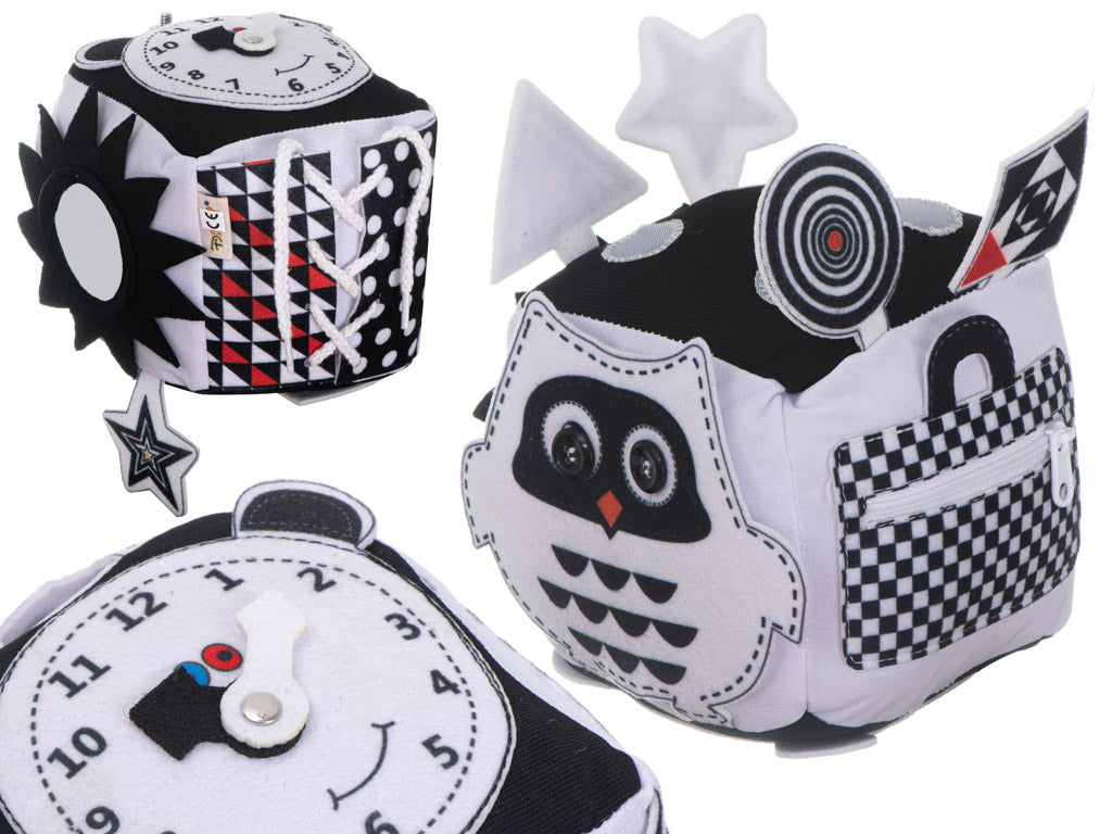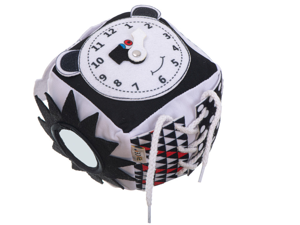 Izglītojošs sensorais kubs zīdainim, melnbalts